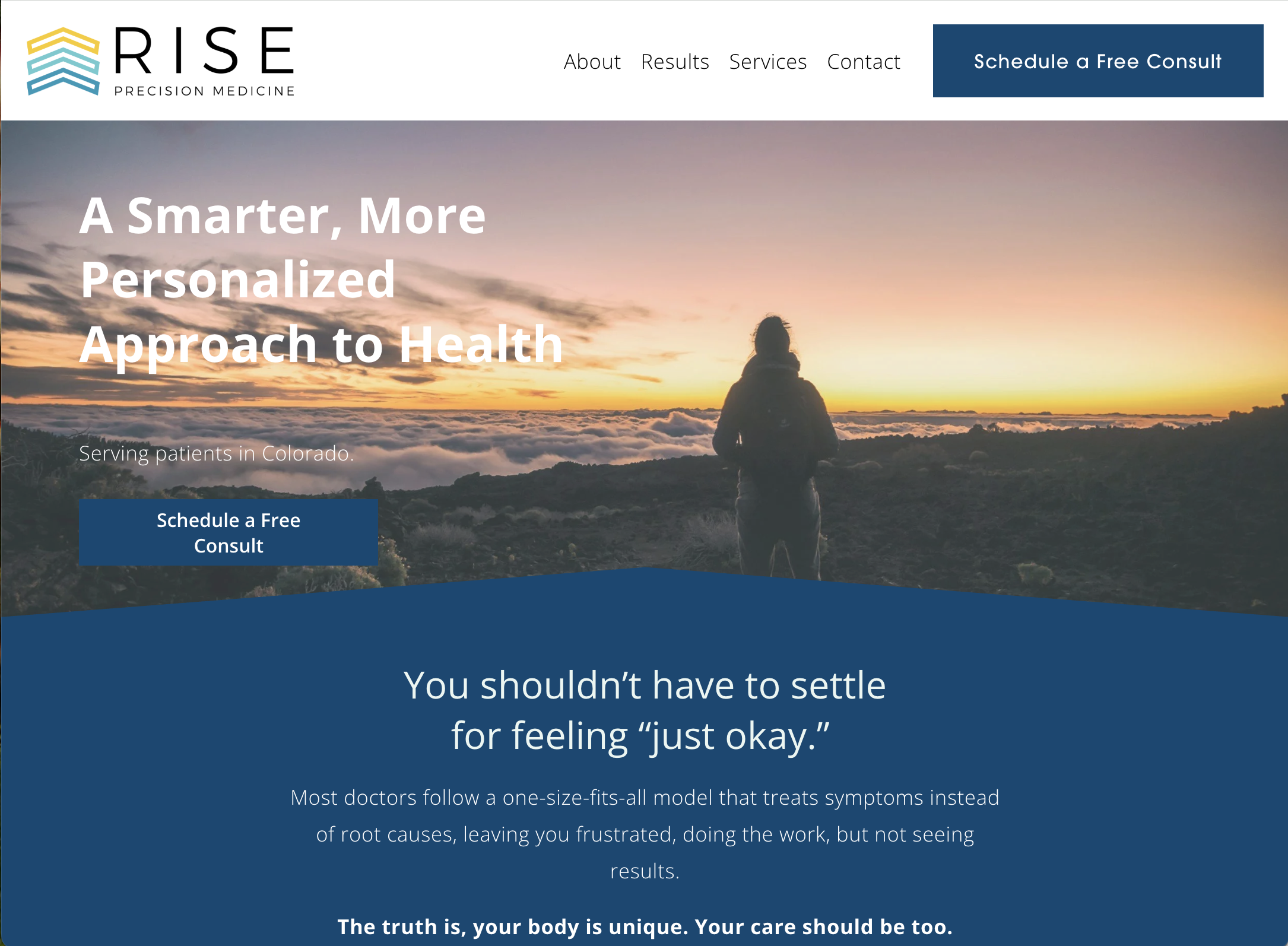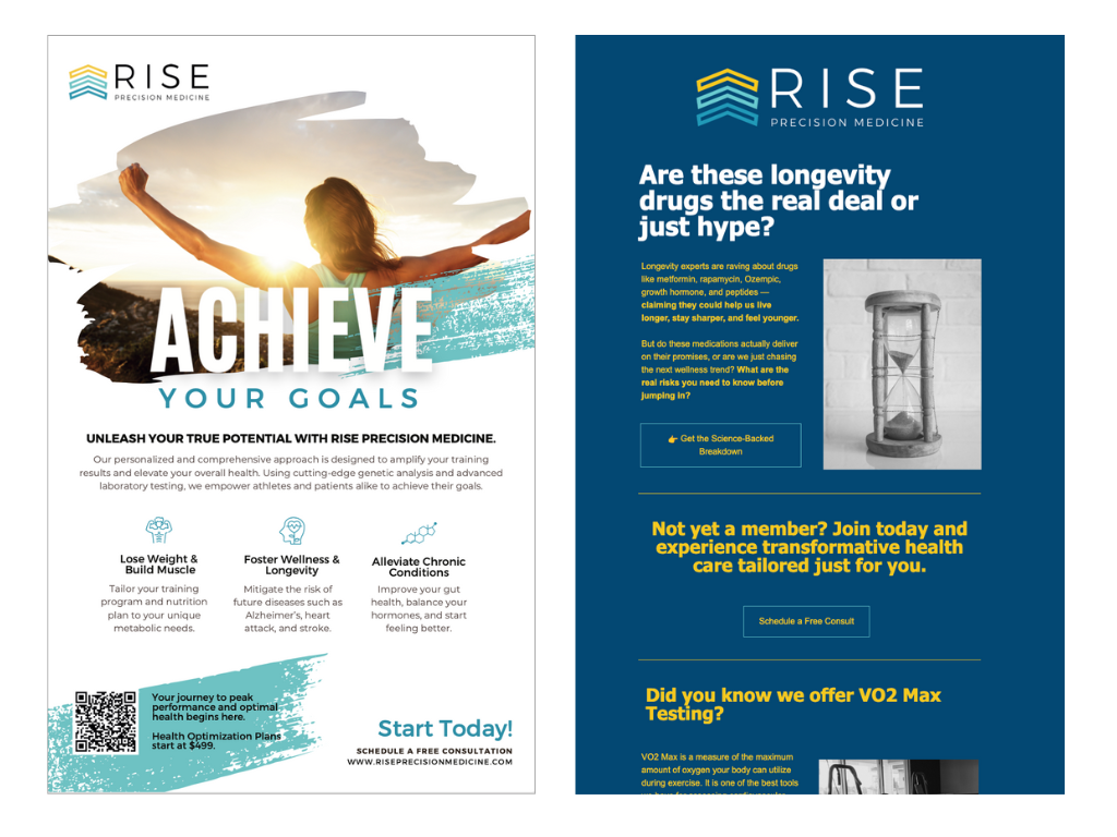Rise Precision Medicine launched in 2023 with a mission to deliver personalized, preventative care to motivated, health-conscious clients. Partnering directly with the founder, we built the brand foundation from strategy through implementation.